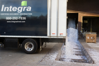 Commercial document destruction experts, like Integra, look at document destruction a little differently. We consider it more as a “process” that requires security standards at many different levels. For example, these would include advising you on how to securely collect and stage your confidential documents until we arrive. If needed, we provide secure containers because it’s never a good idea to expose your employees and your data unnecessarily. Next, is the paperwork for the transfer of custody in place and is there confidence in the transportation methods? Additionally, does the destruction itself “reasonably render the information practicably unreconstructable” as required by the US Federal Trade Commission? Finally, does the shredding vendor have a partnership in place with a reputable paper mill that will take the baled and comingled shredded paper, reduce it to cellulose fiber in a chemical bath and produce new paper products through controlled channels?